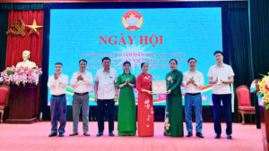 Đồng chí Bí thư Đảng ủy xã Nguyệt Đức – Nguyễn Thị Huấn dự Ngày hội Đại đoàn kết tại thôn 4