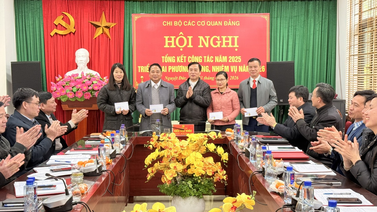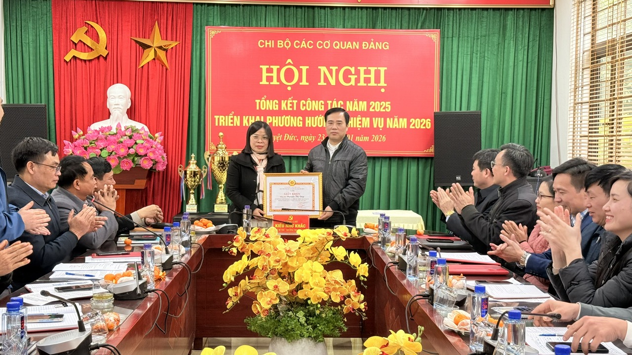 Nhân dịp này, Chi bộ các cơ quan Đảng xã Nguyệt Đức đã tổ chức khen thưởng các tập thể, cá nhân có thành tích tiêu biểu trong thực hiện nhiệm vụ năm 2025, tạo động lực thi đua hoàn thành tốt nhiệm vụ chính trị trong năm 2026.
