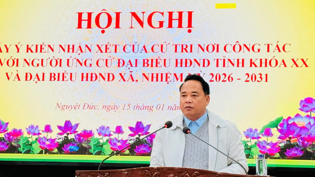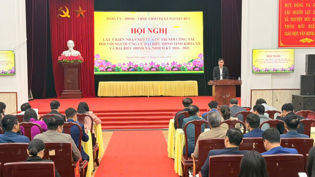 Sáng ngày 15/1/2026, Đảng ủy – HĐND – UBND – UBMTTQ xã Nguyệt Đức đã tổ chức hội nghị lấy ý kiến nhận xét của cử tri nơi công tác đối với người ứng cử đại biểu HĐND tỉnh khóa XX và đại biểu HĐND xã nhiệm kỳ 2026 – 2031