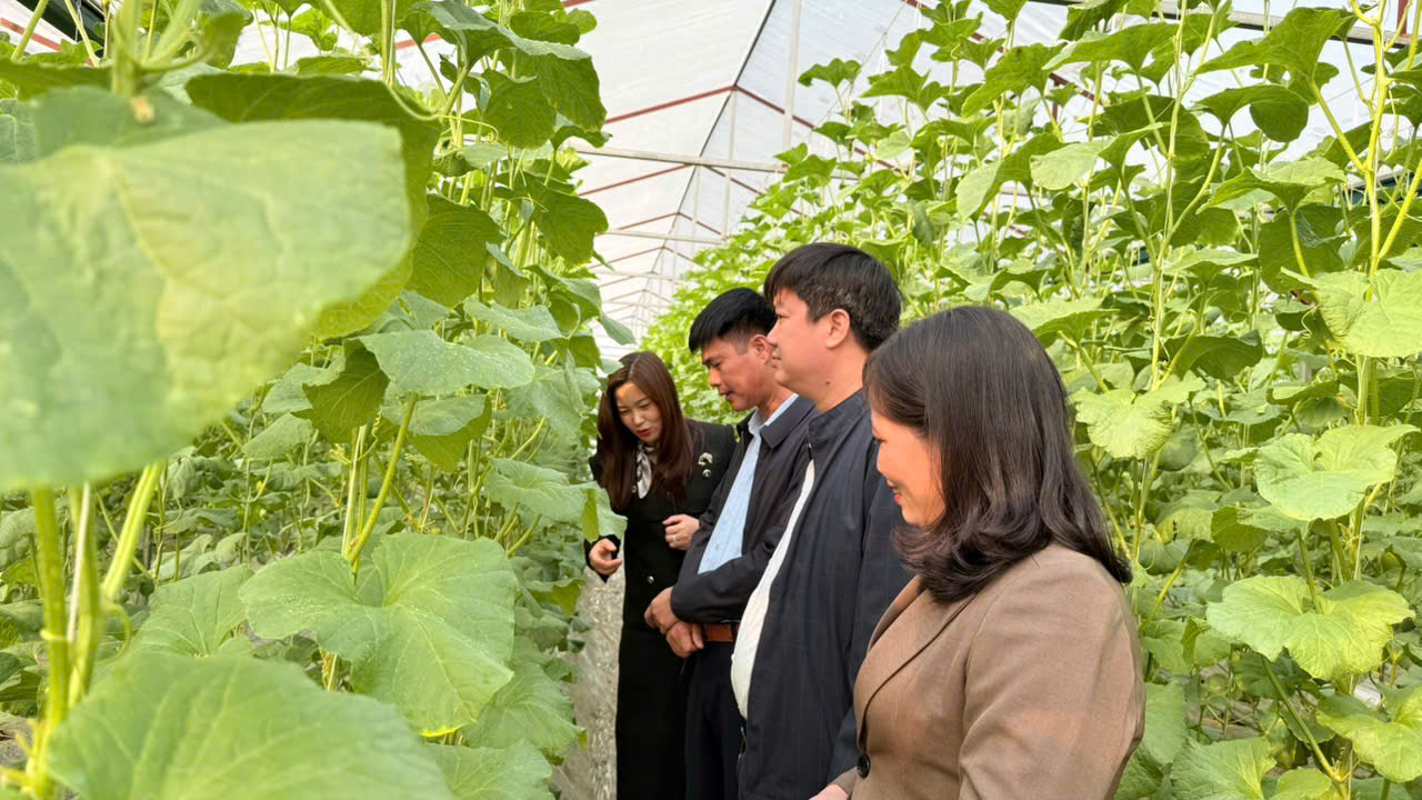 Tại hội nghị tiếp đón và trong chuyến đi thực tế, Đoàn đã được nghe lãnh đạo xã giới thiệu khái quát về tình hình phát triển kinh tế – xã hội, xây dựng nông thôn mới, chuyển đổi cơ cấu cây trồng, ứng dụng khoa học kỹ thuật vào sản xuất nông nghiệp. Đặc biệt, mô hình trồng dưa trong nhà màng công nghệ cao đã để lại nhiều ấn tượng với các học viên. Những luống dưa xanh mướt, quả sai trĩu, quy trình sản xuất bài bản, hiệu quả kinh tế rõ nét cho thấy hướng đi đúng đắn của Nguyệt Đức trong phát triển nông nghiệp hàng hóa, nông nghiệp công nghệ cao. Đây không chỉ là mô hình kinh tế hiệu quả mà còn là minh chứng sinh động cho tư duy đổi mới trong lãnh đạo, quản lý ở cơ sở.