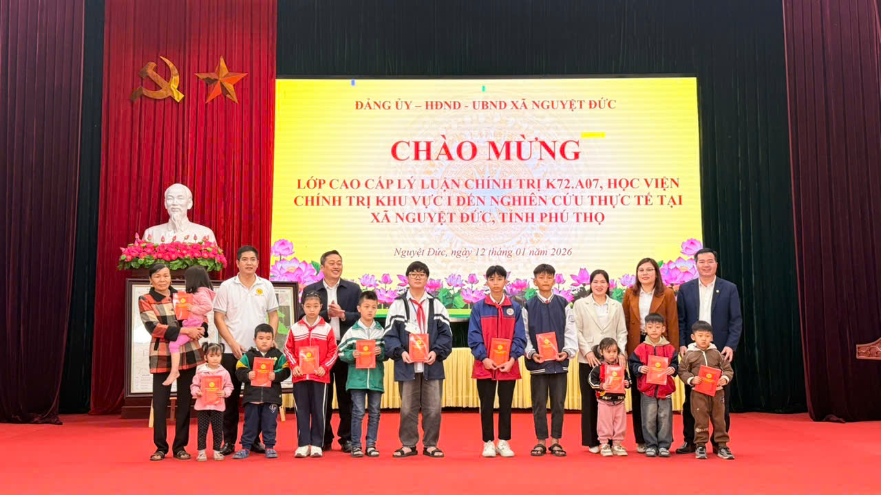 Trong khuôn khổ chương trình làm việc, Đoàn cán bộ, học viên lớp Cao cấp Lý luận chính trị K72.A07 – Học viện Chính trị khu vực I đã dành tặng xã Nguyệt Đức bản đồ hành chính làm quà lưu niệm; đồng thời trao 12 suất quà cho các em học sinh có hoàn cảnh khó khăn trên địa bàn, mỗi suất trị giá 500.000 đồng. Những phần quà quý chứa đựng tình cảm, sự sẻ chia và trách nhiệm xã hội của Đoàn đối với địa phương, góp phần động viên các em học sinh vươn lên trong học tập, rèn luyện.