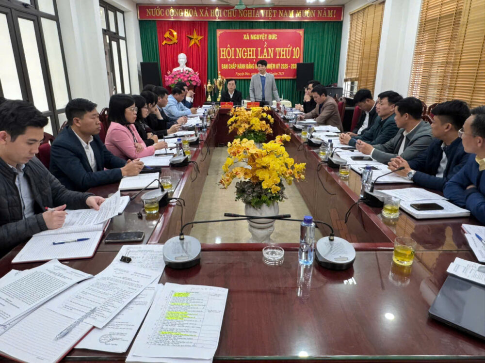 Sáng ngày 30/12/2025, Đảng ủy xã Nguyệt Đức tổ chức Hội nghị Ban Chấp hành Đảng bộ xã lần thứ 10 nhằm đánh giá kết quả thực hiện nhiệm vụ năm 2025 và triển khai phương hướng, nhiệm vụ trọng tâm năm 2026. Các đồng chí Kiều Như Khắc – Phó Bí thư Thường trực…