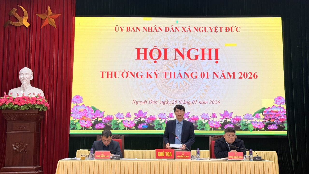 Ngày 26/01, UBND xã Nguyệt Đức tổ chức Hội nghị thường kỳ tháng 01 năm 2026 nhằm đánh giá kết quả thực hiện nhiệm vụ phát triển kinh tế – xã hội tháng đầu năm, đồng thời triển khai nhiệm vụ trọng tâm trước, trong và sau Tết Nguyên đán Bính Ngọ 2026.