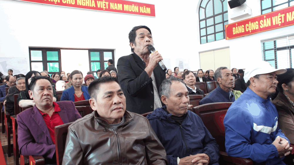 Người dân thôn Tiên Đài phát biểu ý kiến