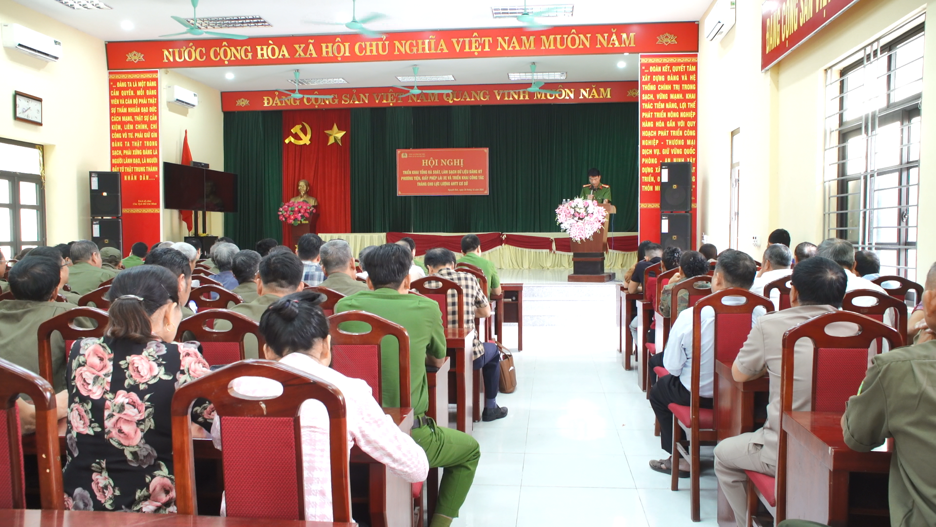 Ngày 30/10/2025, Công an xã Nguyệt Đức tổ chức Hội nghị triển khai Kế hoạch tổng rà soát, làm sạch dữ liệu đăng ký phương tiện, giấy phép lái xe và số hóa hồ sơ đăng ký xe. Đồng chí Nguyễn Văn Sáng – UVBTV, Trưởng Công an xã, dự và chủ trì hội nghị. Cùng dự có các đồng chí trong Ban Chỉ huy Công an xã, Tổ trưởng các Tổ nghiệp vụ và toàn thể lực lượng tham gia bảo vệ an ninh, trật tự ở cơ sở.